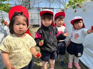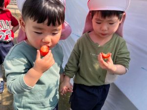 と真っ赤ないちごを手の中にたくさん持って、新たな目星をつけてるお友だちも😁