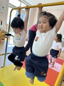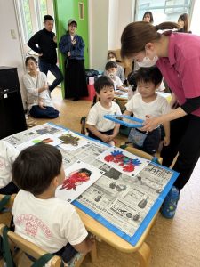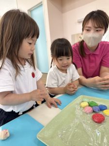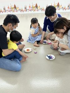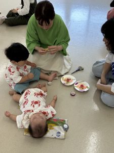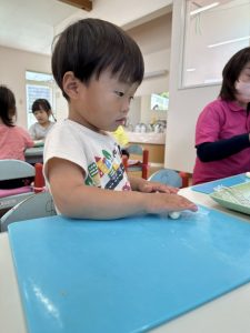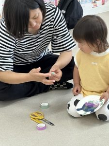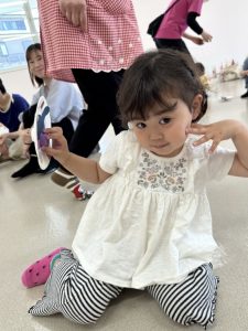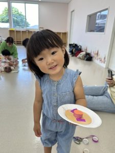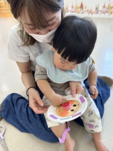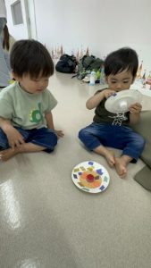 まだ指でつまんで回すのが難しいお友達も、お皿の周りを手で上手に回して遊んでいました✨
