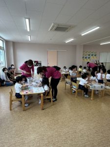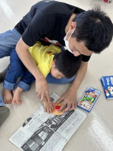 また制作前のアンパンマンは、丸に赤鼻したなかったので、子どもたちもピンときてなかったのか、バイキンマンの方が人気でした。