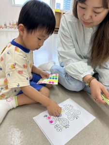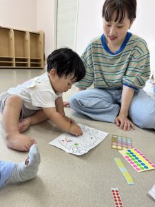 男の子も喜んでくれて、シール貼りをした絵をちょっと照れながらも園長に見せていました✨