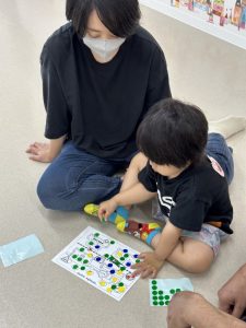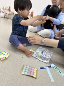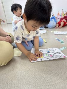 今日はみんなでシール貼りをしたり、身体測定をしたりしました。
