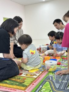 なかなかボールのキャッチは難しくても、風船ボールだと上手にキャッチしたり、ドリブルしたり、お母さんとキャッチボールをして楽しんだりすることが出来ました♡