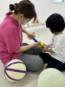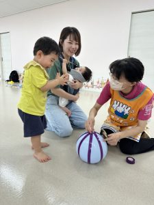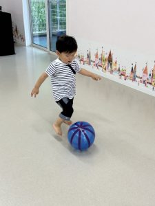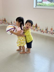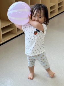 なかなかボールのキャッチは難しくても、風船ボールだと上手にキャッチしたり、ドリブルしたり、お母さんとキャッチボールをして楽しんだりすることが出来ました♡