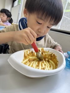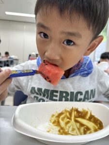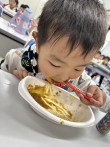 自分たちで作ったカレーは大盛況でお代わり!お代わりでお鍋は空っぽになりました。