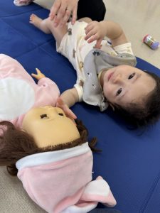 前回のベビーマッサージ✨幼稚園のさくらちゃんと一緒にマッサージ♡