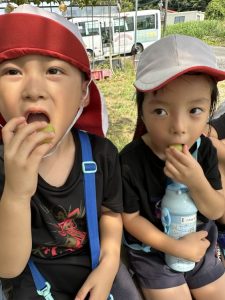 とっても甘くて美味しかったです!もう食べちゃいました!と保護者の方々がお話ししてくださいました。ぶどう園では美味しいシャインマスカットを試食させていただき、みんなで食べましたね♡