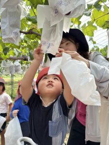 とっても甘くて美味しかったです!もう食べちゃいました!と保護者の方々がお話ししてくださいました。ぶどう園では美味しいシャインマスカットを試食させていただき、みんなで食べましたね♡