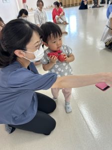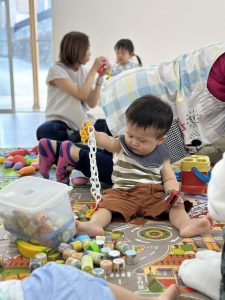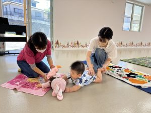 後半は赤ちゃんのお人形に興味津々で、上手になった腹這いでどこまででも進んで行っていましたね😄