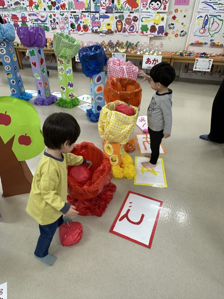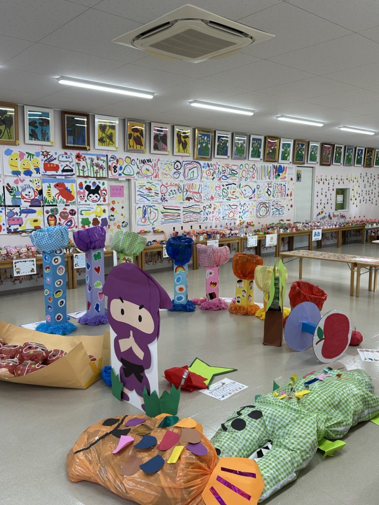 今日はたから幼稚園園舎にて、4月から子どもたちが作っていた作品を並べて展示会を行いました✨