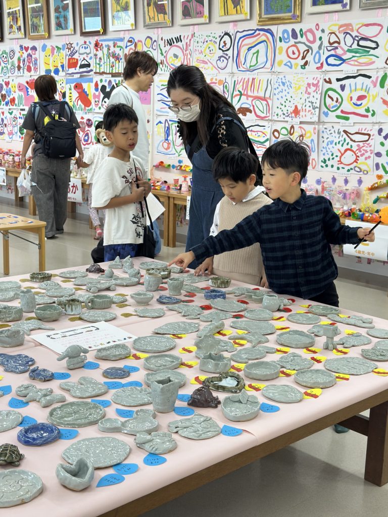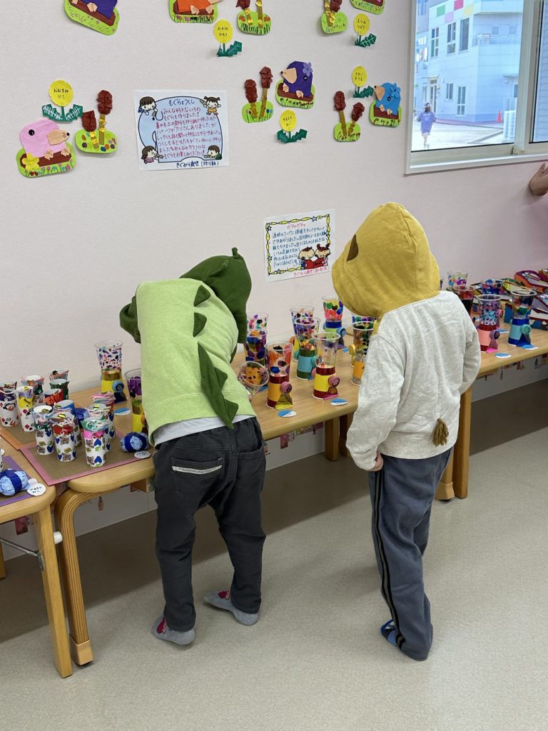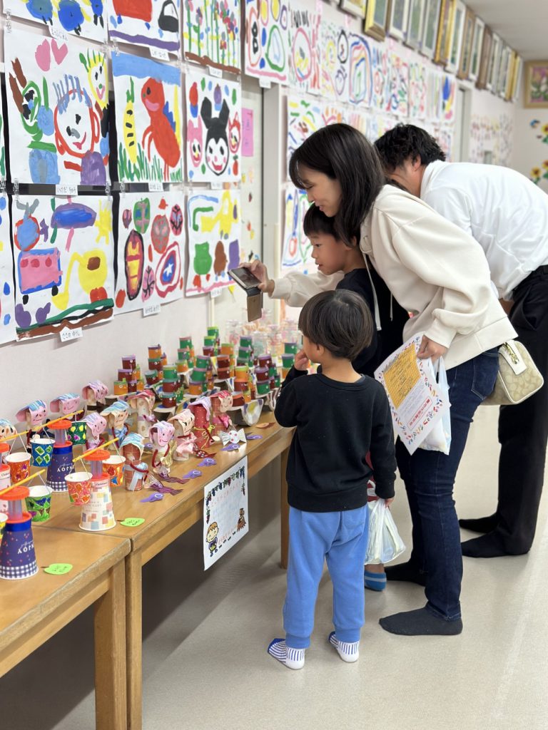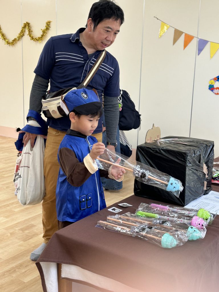 今年はみんなが好きなガチャガチャや、ビー玉ころがし、動物パックンチョやけん玉など様々な作品が教室いっぱいに並びました✨