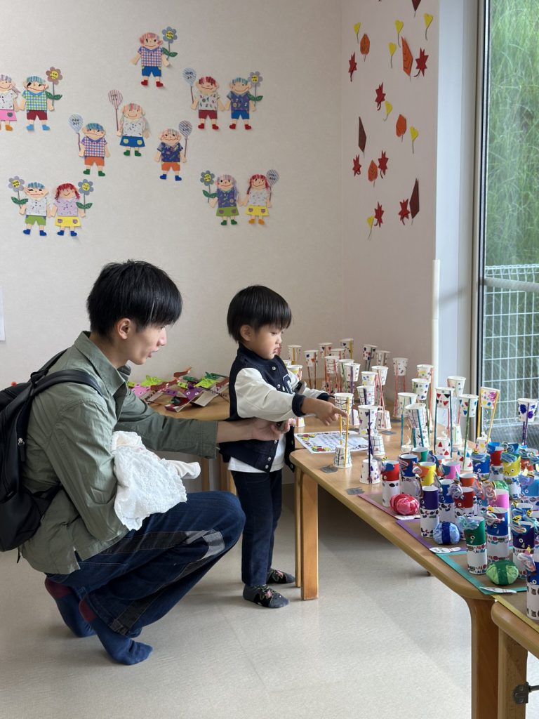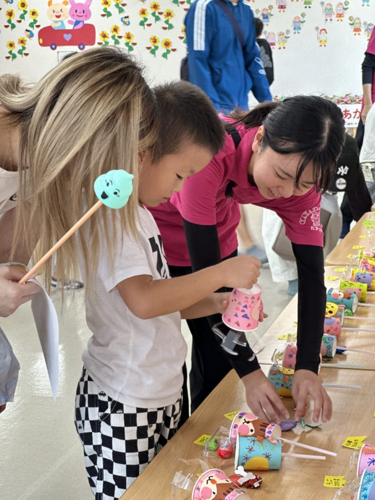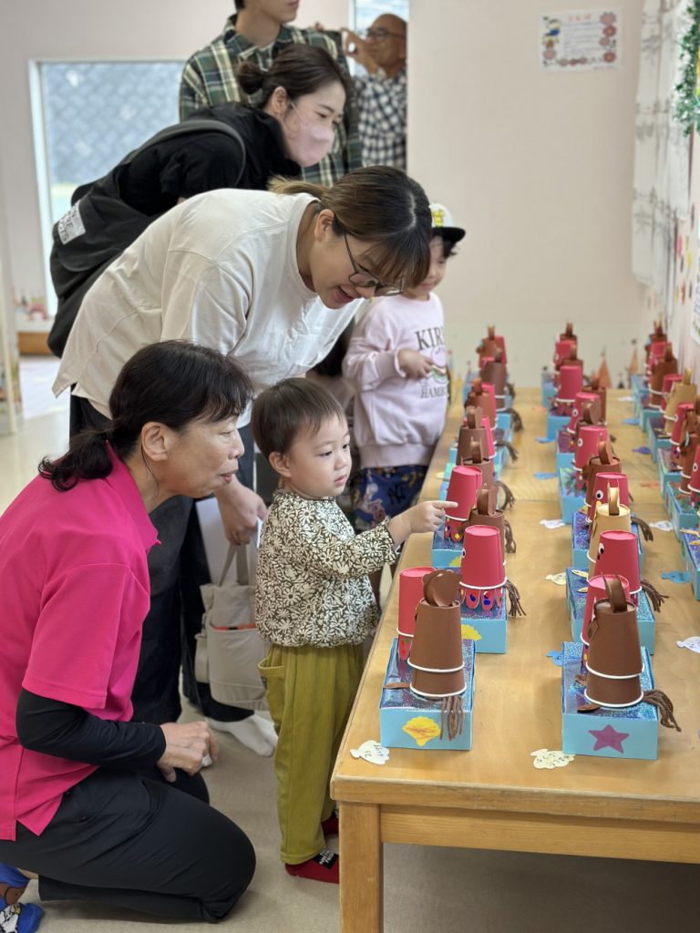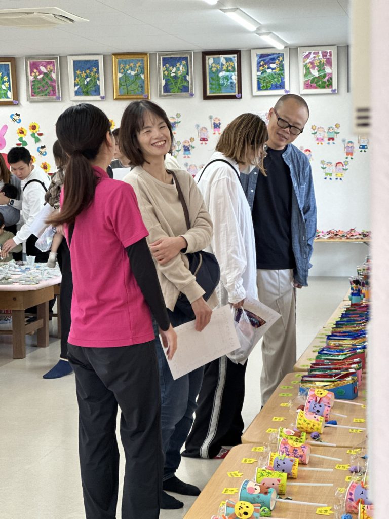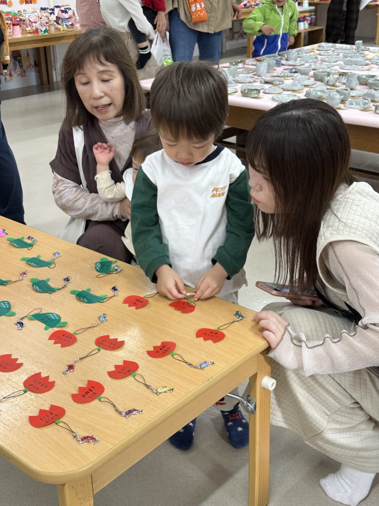 今年はみんなが好きなガチャガチャや、ビー玉ころがし、動物パックンチョやけん玉など様々な作品が教室いっぱいに並びました✨