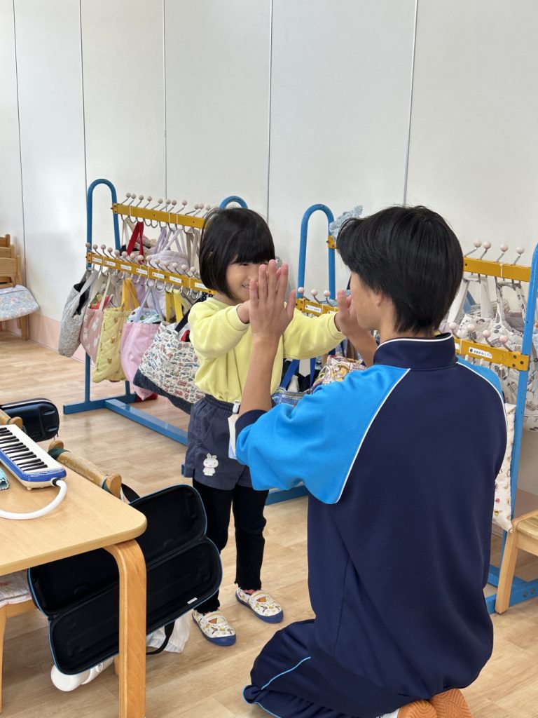 さて、28日はベビーマッサージ♡、そして今日はハロウィンをしました✨そして、御木中学校のお兄ちゃん、お姉ちゃんたちも職場体験に来てくれました!!卒園した子どもたちも数名来てくれて、元気な姿を見ることができ、そして立派に自分の気持ちを言葉にして伝えていたり、子どもたちと優しく遊んでくれるみんなが見れて嬉しかったです♪