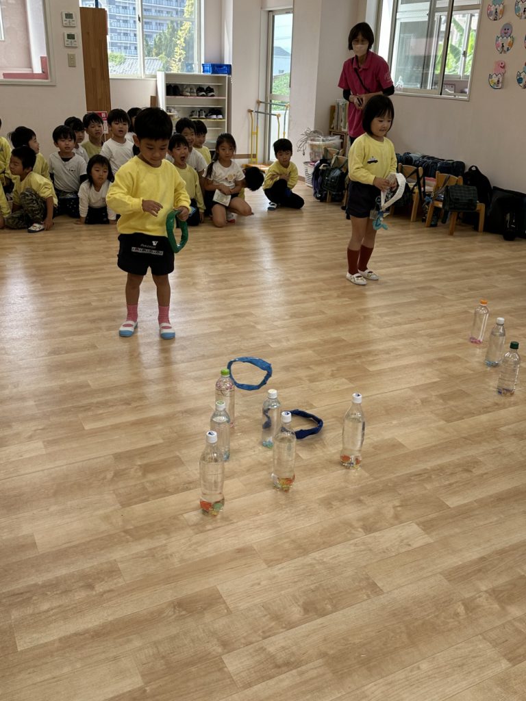 今日は久しぶりの雨模様でしたね。子どもたちは水たまりを楽しそうに歩きながら登園してきました。