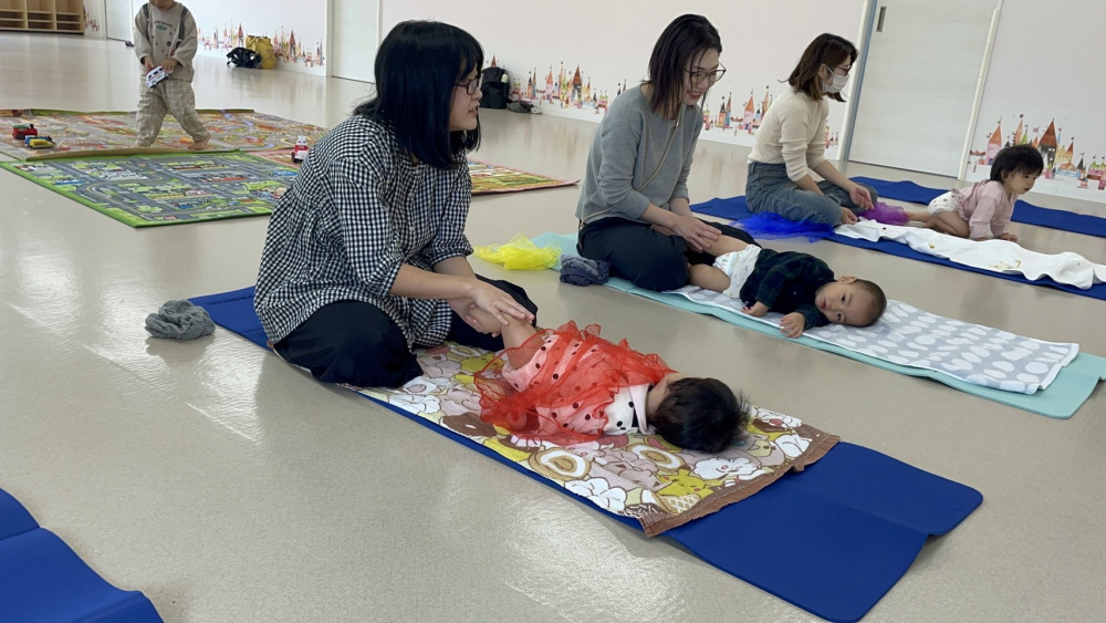 さくらんぼのベビーマッサージは、癒されてトロォ〜っと眠たくなってきた子もいましたし、ハイハイが上手になってどんどん探検に行きたい子もいました☺️