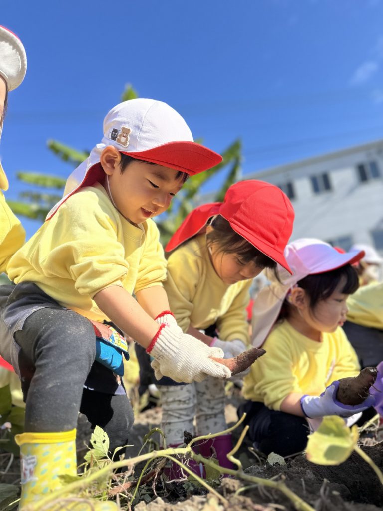 そして幼稚園のお友だちは芋掘りをしたり、玉ねぎを植えたり、マラソンを頑張ったり❗️